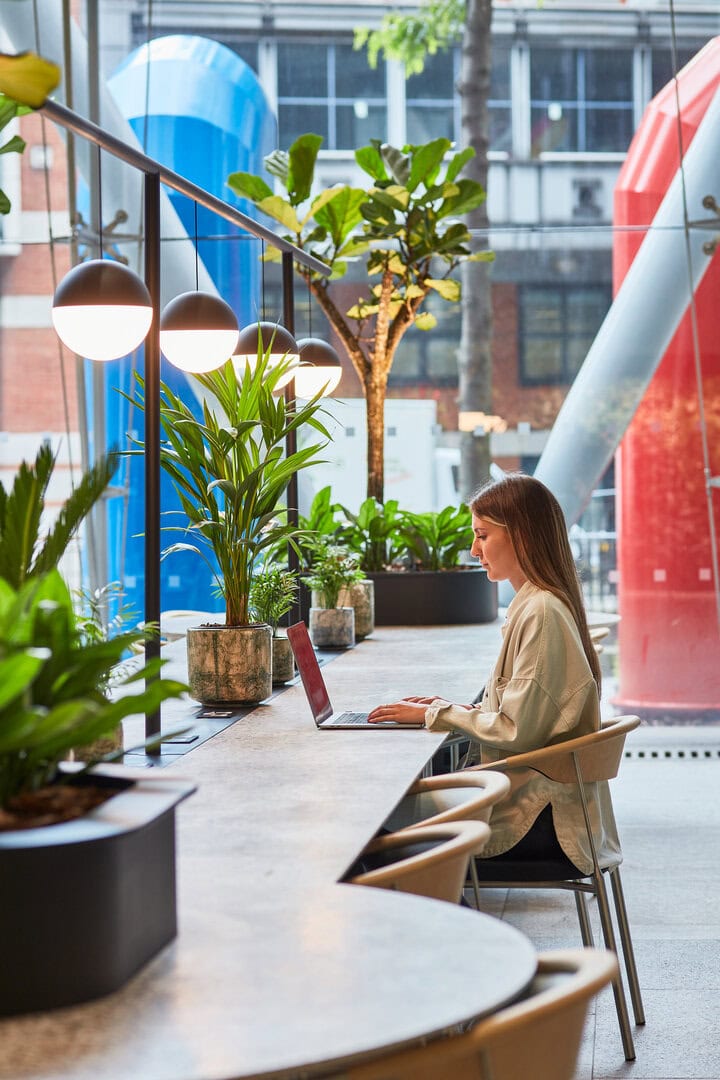 The reception received a refreshing makeover with full CAT B works. It now boasts a 45-meter living wall, bespoke joinery, full-height glazing and a flexible co-working space. A barista-style café enhances the leasing offering, while welfare facilities, including cycle racks, showers and lockers, promote well-being. The result is a tranquil and sophisticated space where every detail contributes to a serene experience.