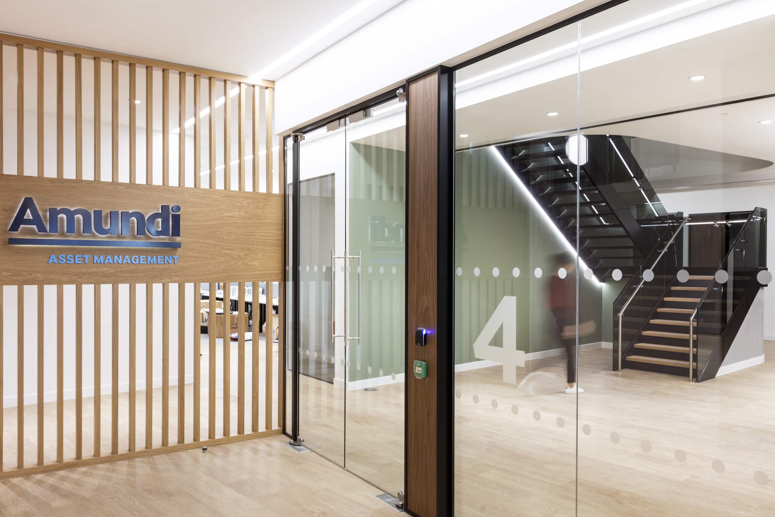 AIS responded by curating a modern, technology-infused design for Amundi’s European hub in London. The result: a collaborative workplace design that seamlessly connects global teams. The design strategically dismantles formality, creating a welcoming ambiance for client engagements. An impressive client journey unfolds from the reception’s backlit marble features to curved glazing in meeting rooms.