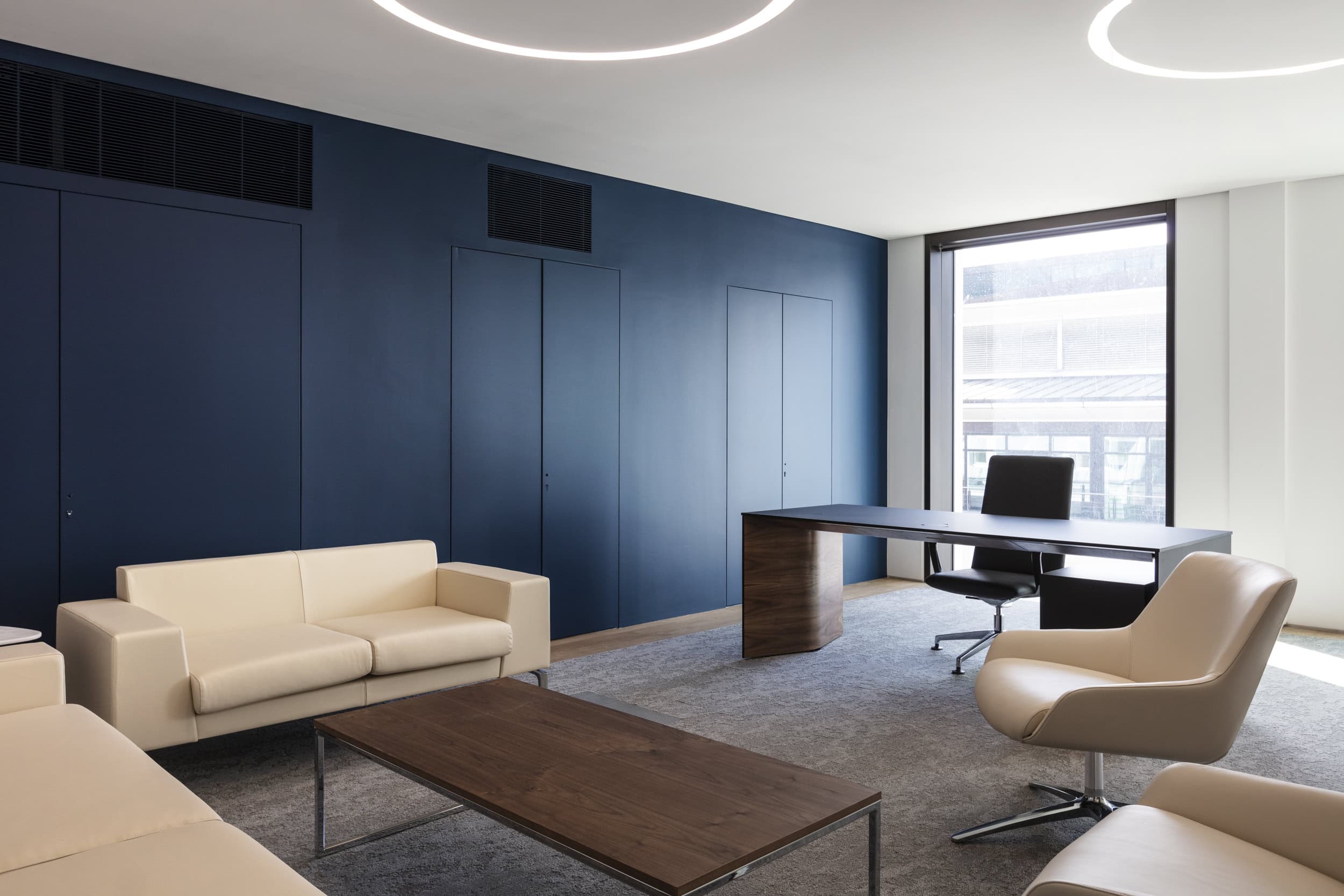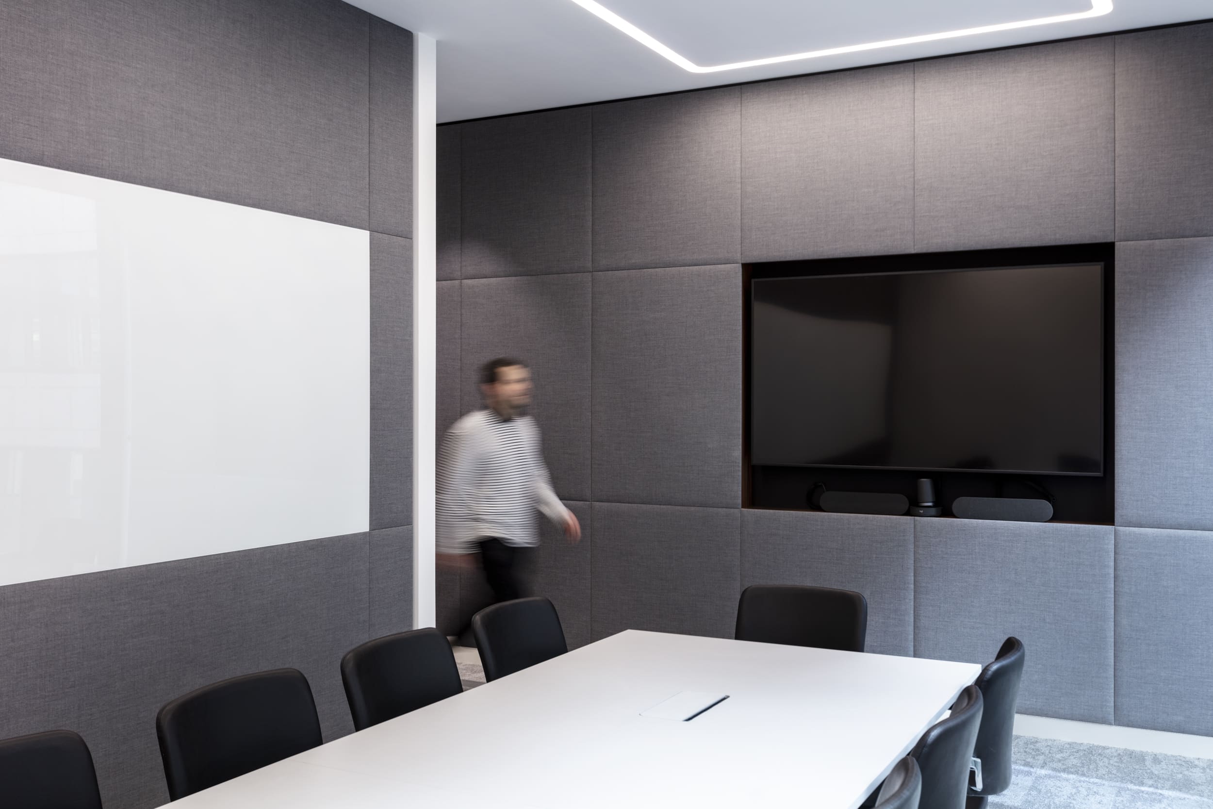 Designed impressive client meeting rooms with adaptable layouts, accommodating presentations and intimate gatherings.