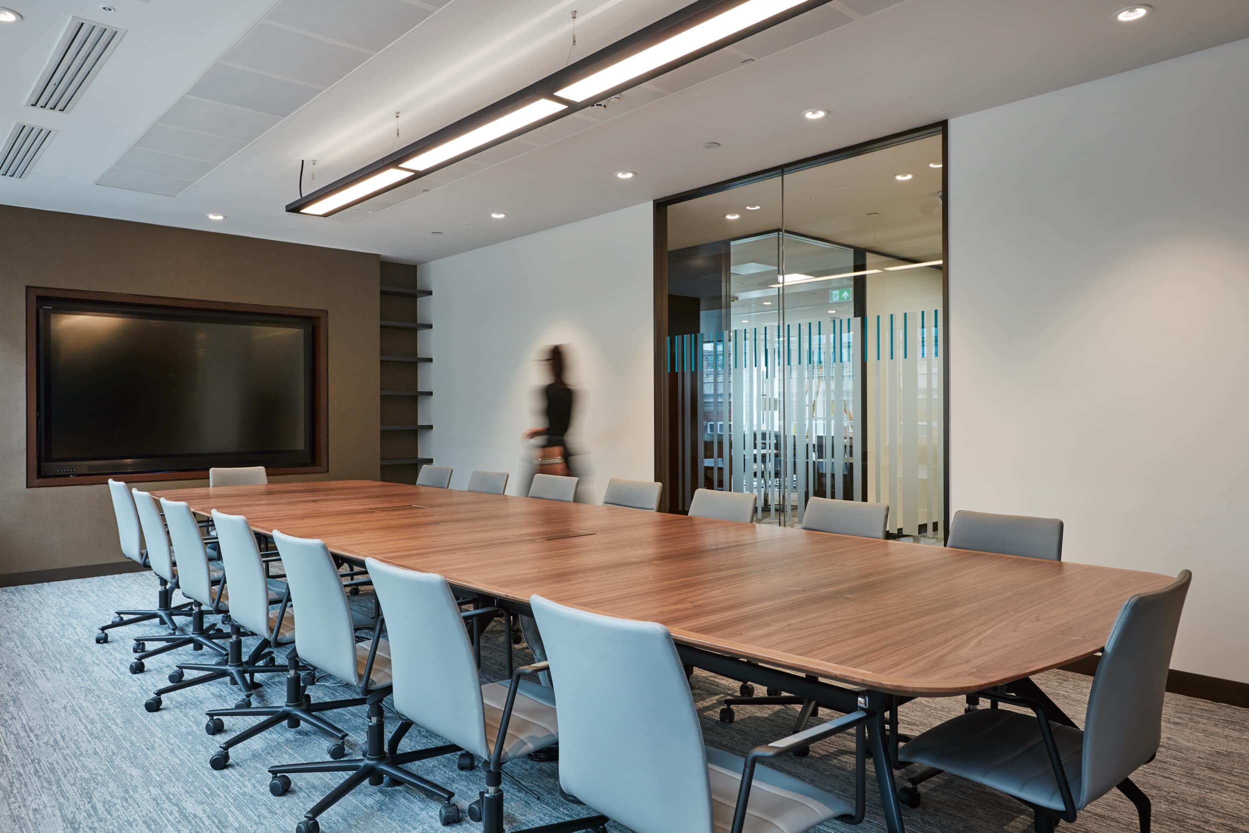 Here we created a suite of offices fitted with furniture modules capable of being adapted for future change. Efficient storage solutions fit seamlessly into workspace walls increasing the amount of storage for staff while using the minimal amount of space. Soundproof privacy pods allow lawyers to make confidential phone calls or conduct sensitive conversations without disturbing others