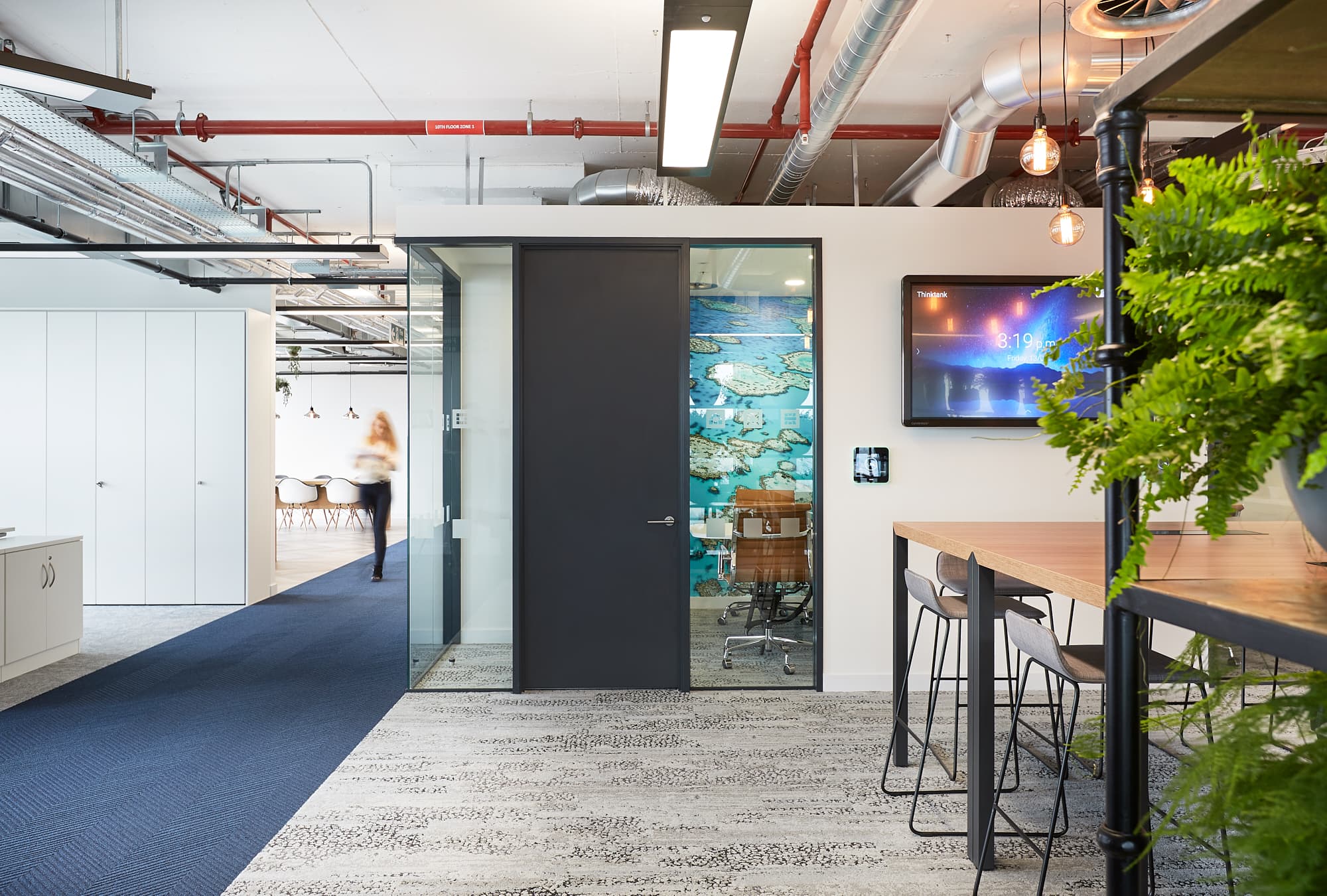 This comprehensive digital media office design and build by AIS seamlessly blends youthful sophistication, connectivity and an open culture, creating an environment that not only fosters innovation but also promotes a sense of community.