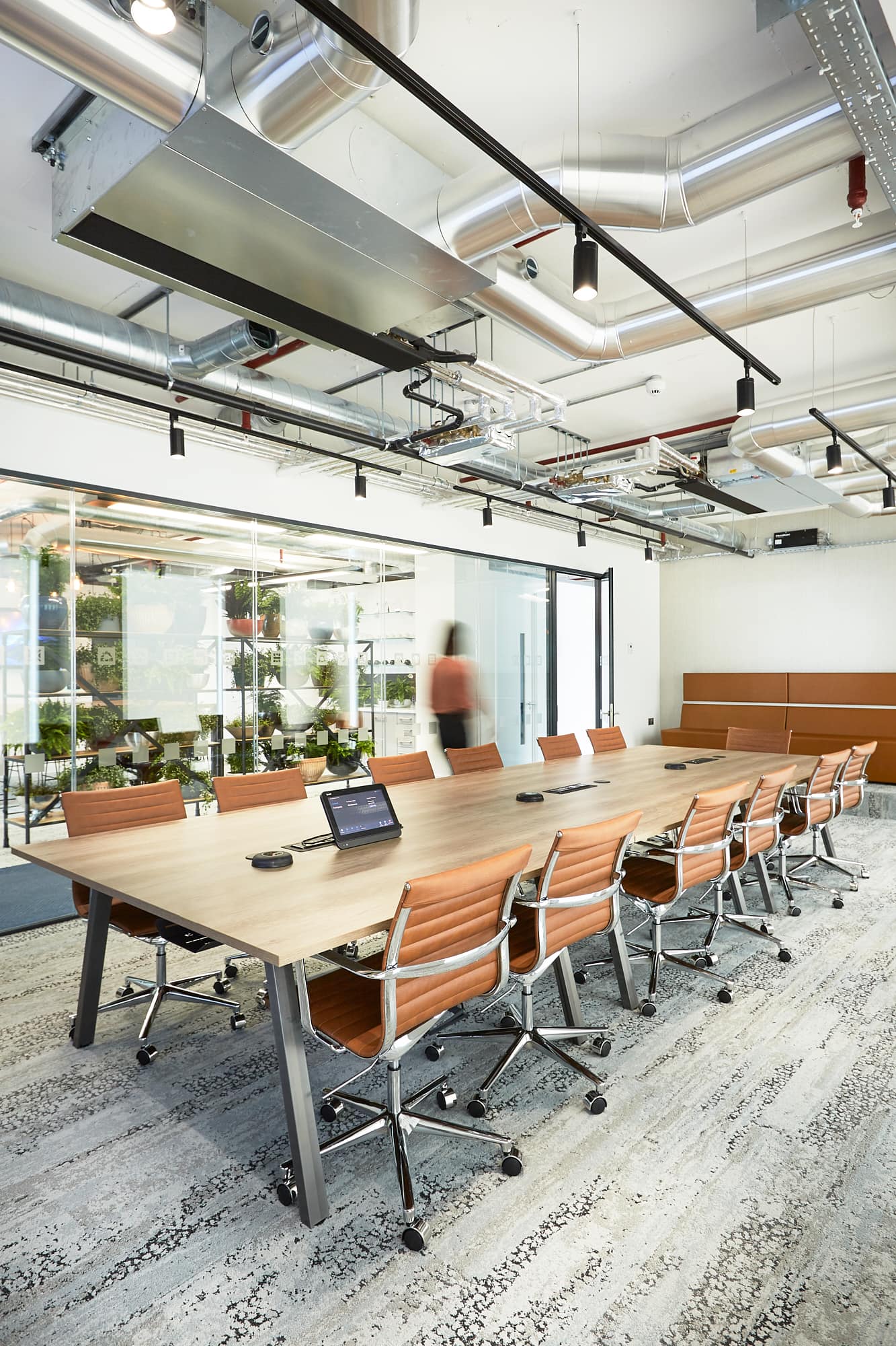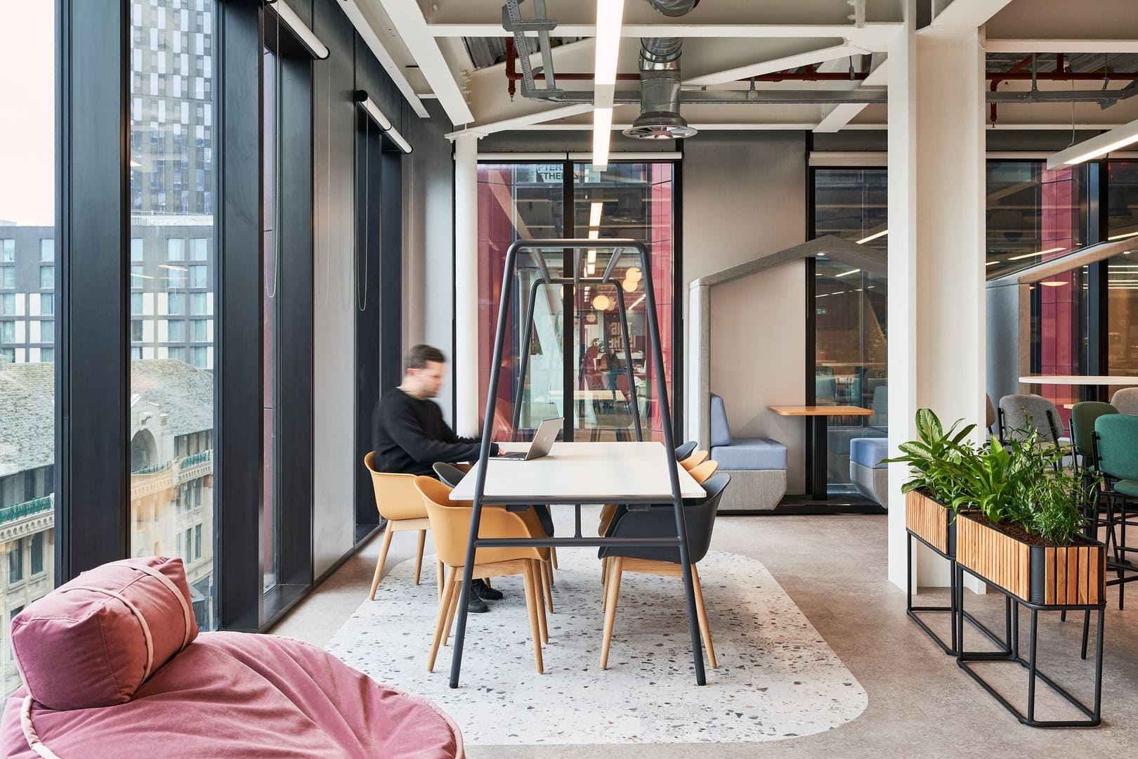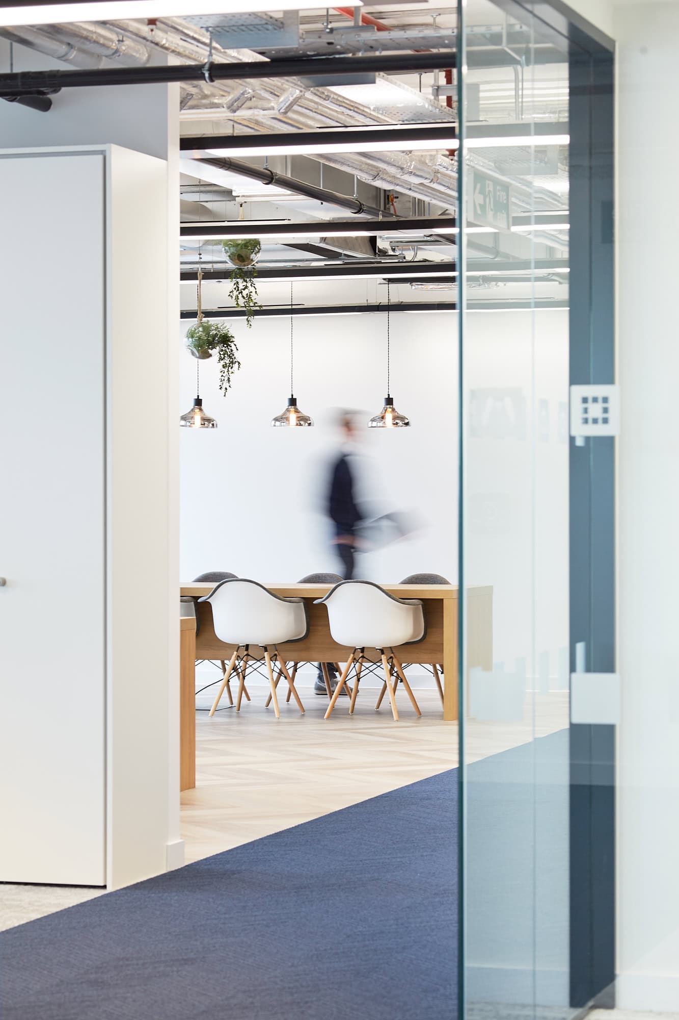 Open plan floor plate with carefully considered partitioning solutions separates teams acoustically while maintaining a sense of the ‘one office.