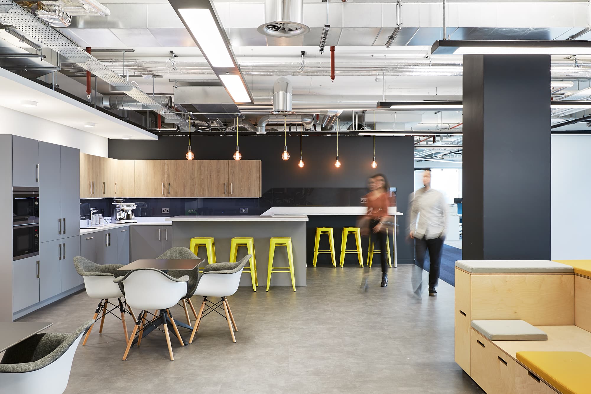 Across the floor plate the space fully embraces the company culture of openness. While each team within the business had intrinsically different space requirements, some requiring more quiet working environments than others, our design incorporated a number of gathering spaces to give people who may not work together the opportunity to collaborate during breaks or in passing allowing for the open sharing of knowledge.