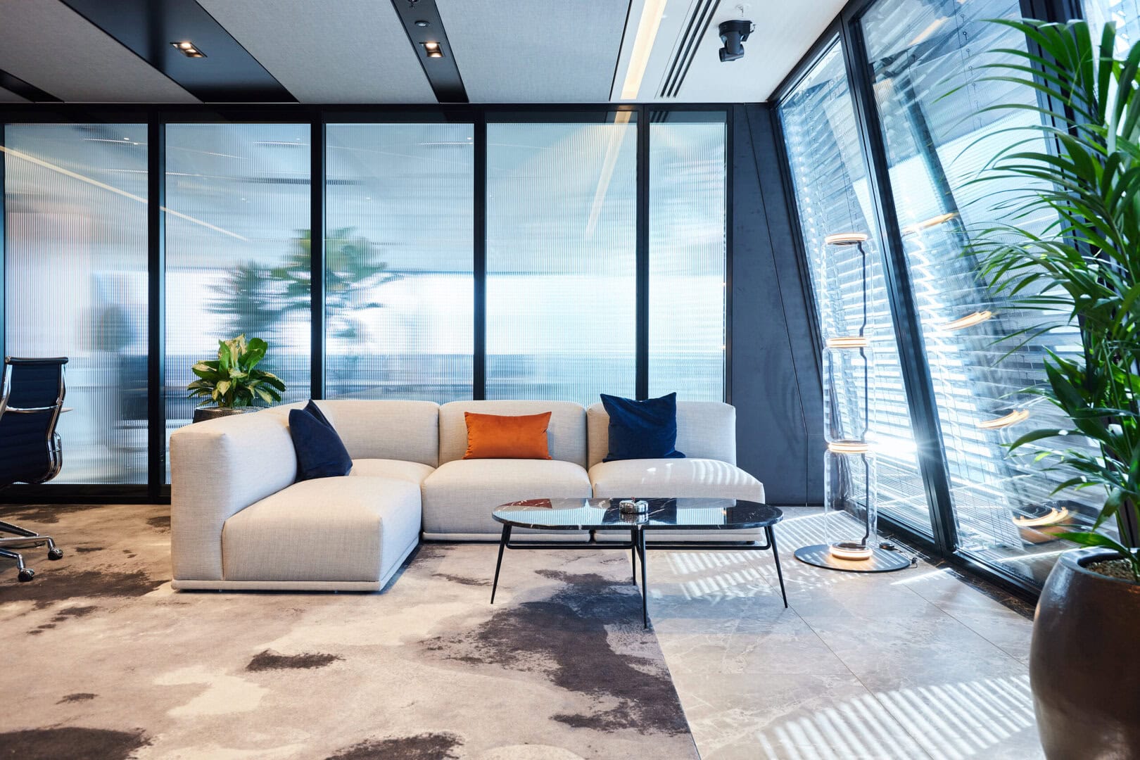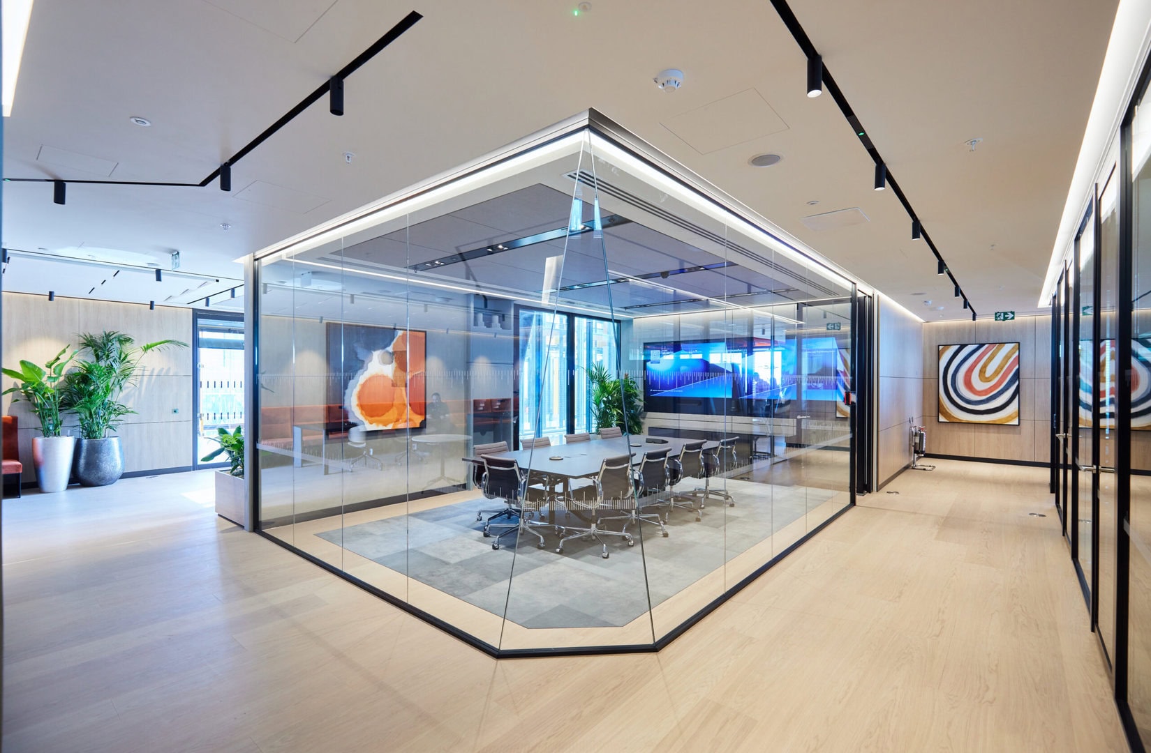 With a premium, precision-engineered approach driving the design, key elements were thoughtfully integrated throughout the space, most notably, individual environmental controls in each meeting room. Users can tailor both temperature and lighting to their specific needs, while fully acoustic-panelled walls and double-glazed glass between rooms enhance privacy and sound insulation.