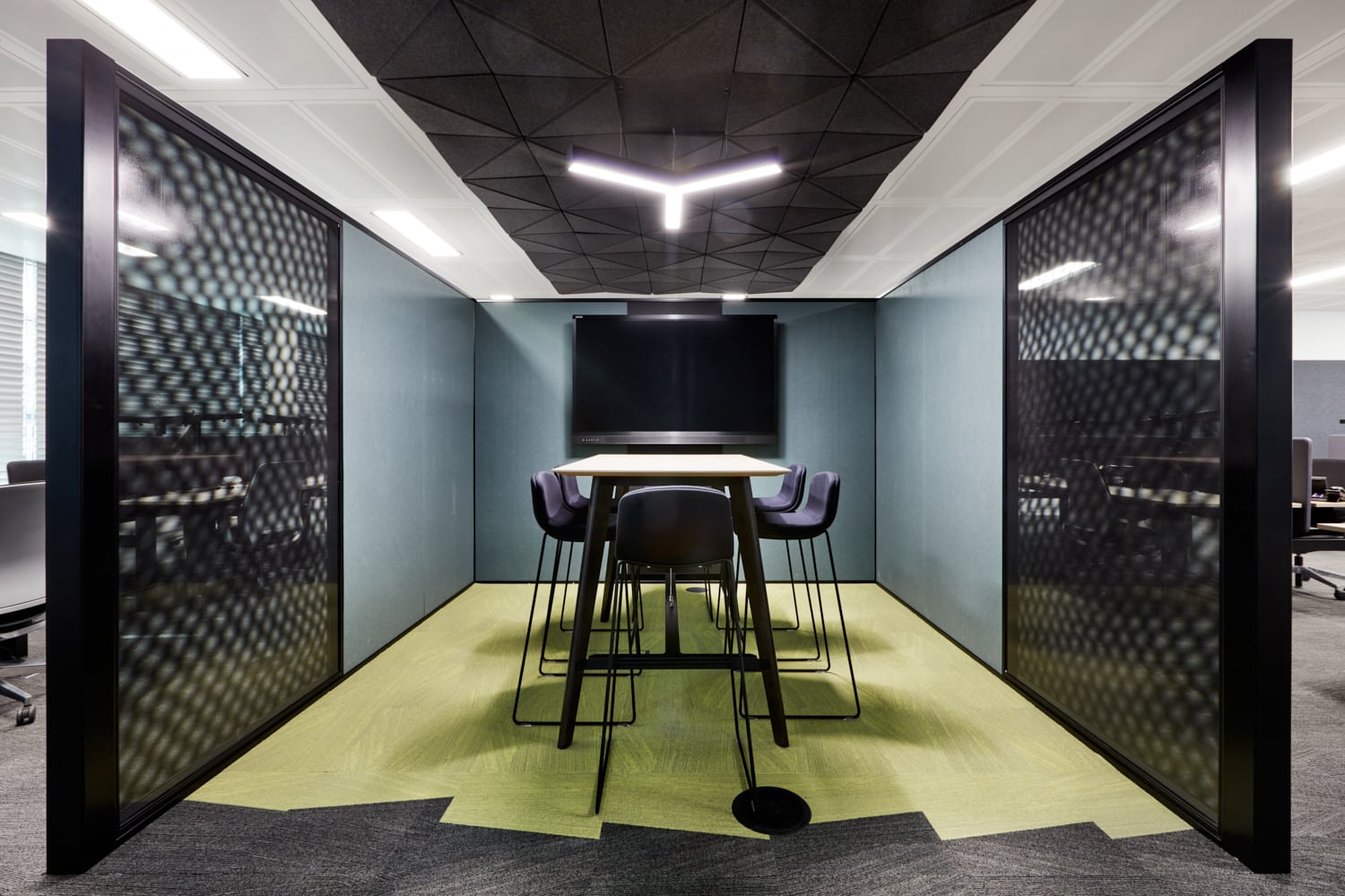 The overall layout of the floor plate has been designed to allow for a continuous primary circulation route from the open plan, to wrap right around the building’s core. This central, continuous circulation route is defined by a single continuous light guiding employees and visitors throughout the space while also acting as a ‘walking’ meeting room, promoting frequent movement around the space to stimulate incidental interaction amongst different teams.