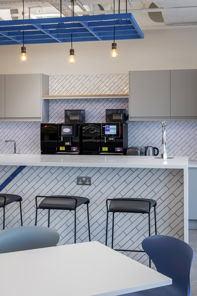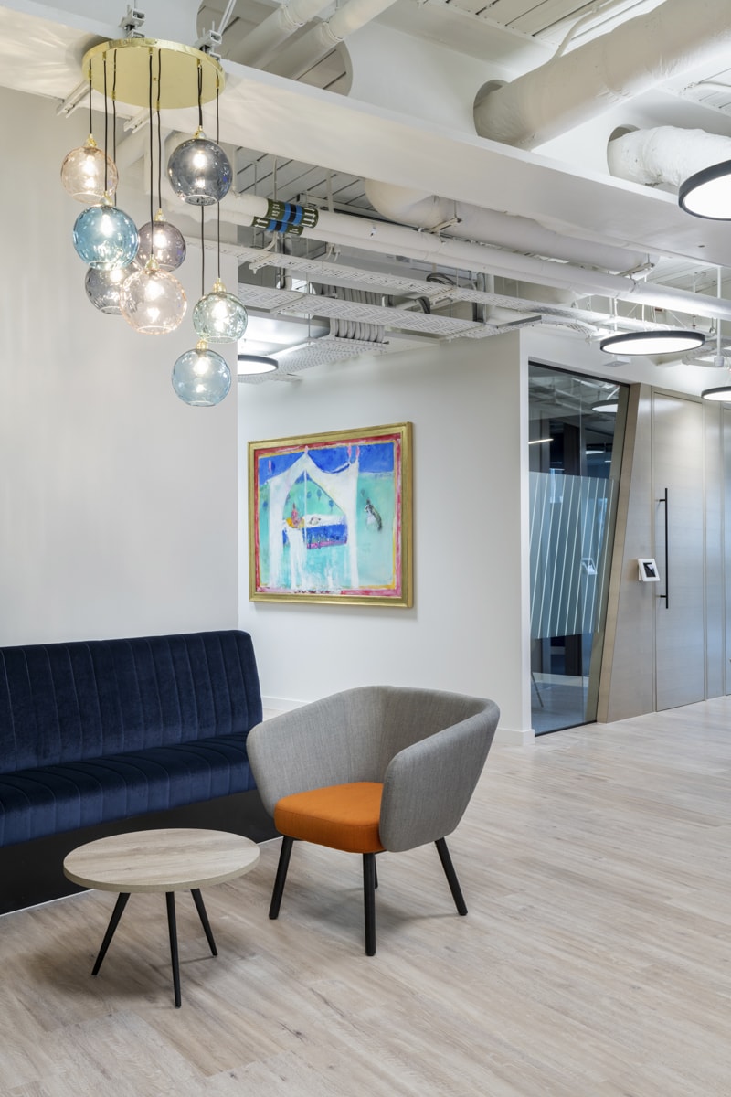 As a provider of digital marketing services in the healthcare sector, it was crucial to strike a balance in the office ambiance—avoiding excessive corporate vibes while upholding a sense of sophistication. Drawing inspiration from the Real Chemistry brand identity, our design concept seamlessly integrates the three key brand elements. These elements run cohesively throughout the space, shaping architectural features like booth seating, reception joinery and even extending to the intricate details of the kitchen tiling.