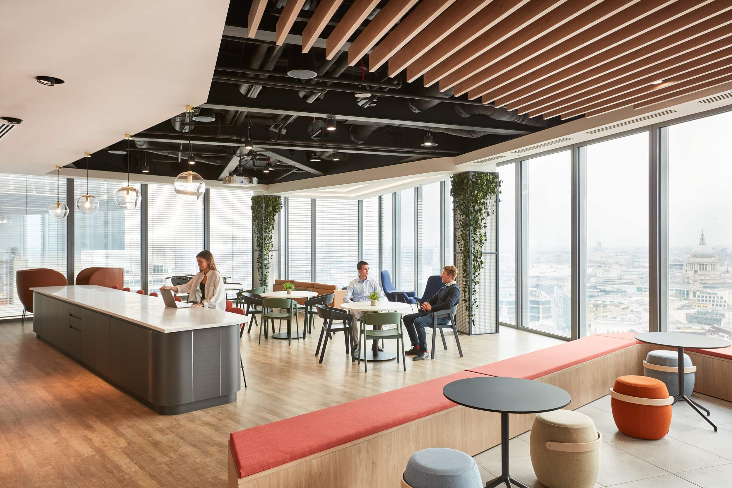 Flexible bleacher-style seating not only accommodates larger presentations but also encourages spontaneous discussions and informal catch-ups. Moreover, the workspace is divided into departmental neighbourhoods, each curated with a diverse array of settings to cater to different collaboration levels and concentrations.