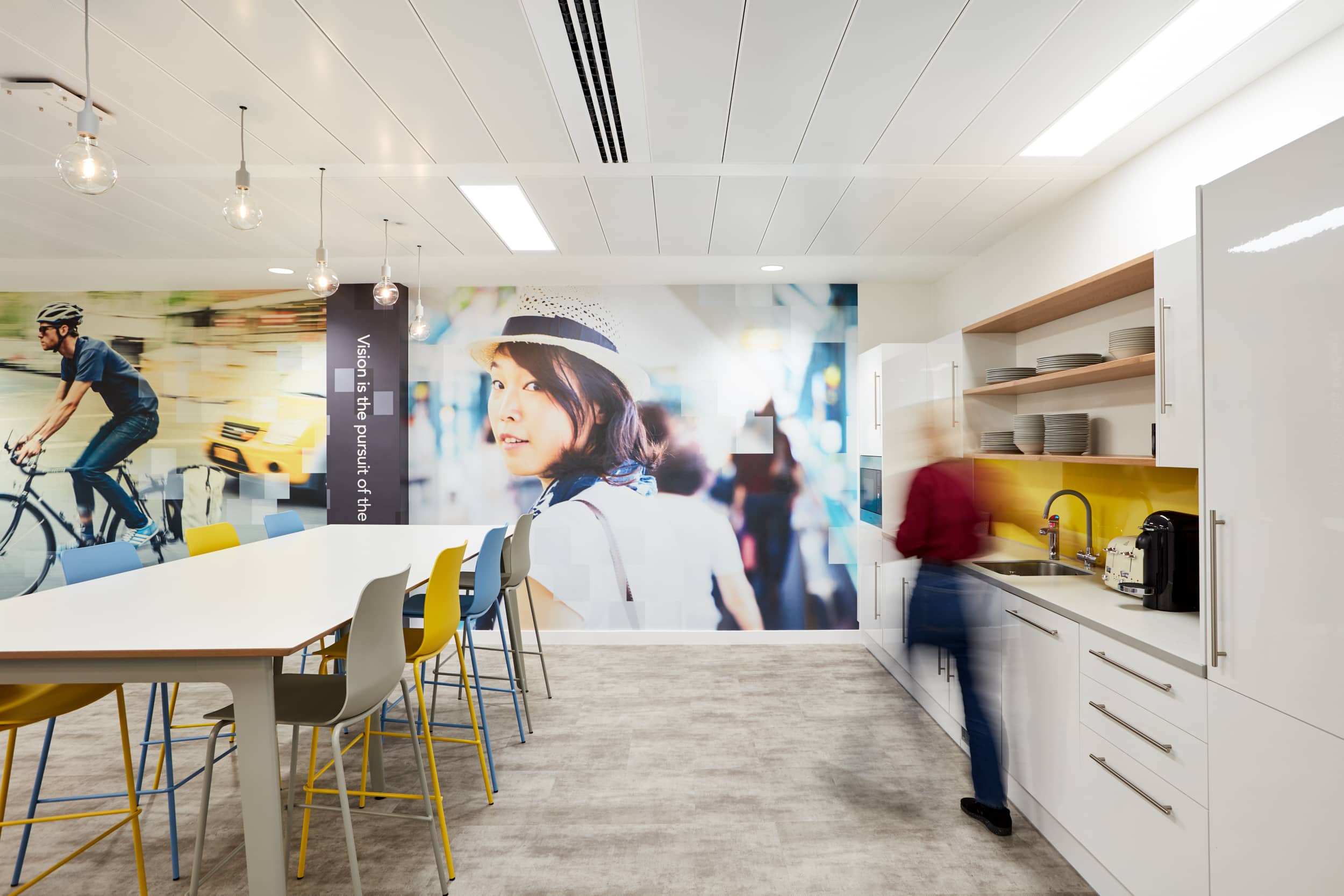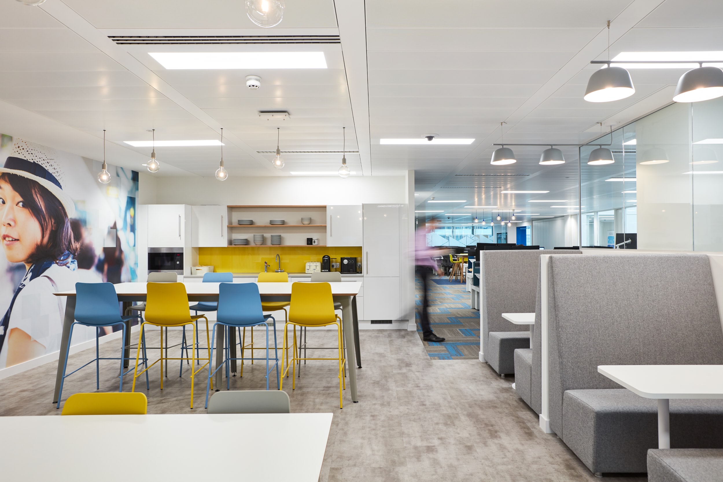 Vibrant brand elements and ample employee break out spaces resonate with emerging talent, to create an engaging workplace environment.