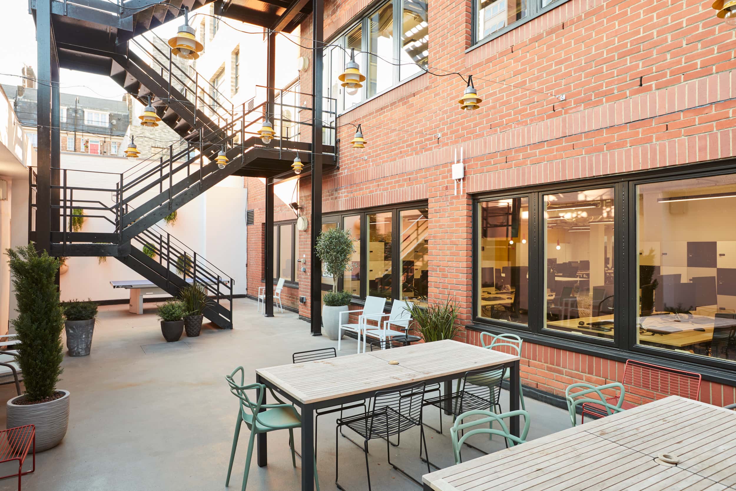 As a community led business it was important that their workspace created opportunities for people to come together. In addition to the work-café area, staff can get together in the adjacent courtyard space where teams, visitors and young people can come together in a comfortable space reflective of the brand’s open company culture. We kitted out this space with fun outdoor furniture and seating as well as a few ping pong tables.